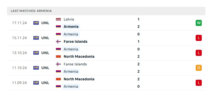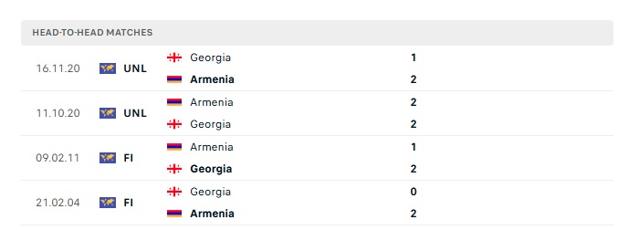 Hiện tại, phong độ thi đấu của hai đội đang tương đối ngang ngửa nhau trong thời gian qua. Georgia trong 6 trận đấu gần nhất đã có cho mình 2 chiến thắng, 1 hòa và còn lại là 3 trận thua. Trong khi đó thì Armenia lúc này cũng đang thắng 2, thua 3 và hòa 1 trong 6 trận gần nhất. Vậy thì rõ ràng, khi có lợi thế sân nhà, Georgia hoàn toàn đủ sức giành về cho mình 3 điểm trọn vẹn trước đối thủ.