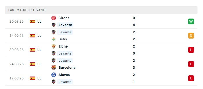 - Phong độ gần đây Levante