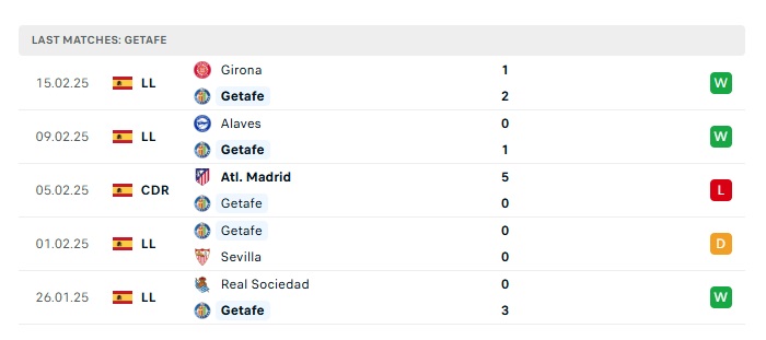 - Phong độ gần đây Getafe
