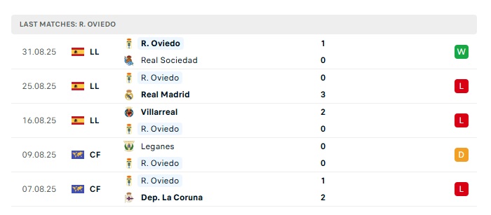 - Phong độ gần đây Real Oviedo