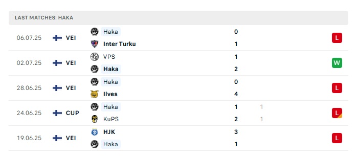 Haka: Hughes; Mommo, Almen, Friberg, Purosalo; Romero, Okyere, Bulgakov; Sejdiu, Da Sylva, Lindholm.