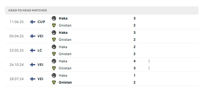 - Kèo tỷ số H1 Gnistan vs Haka: 0-0