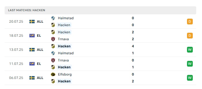 - Phong độ gần đây Hacken