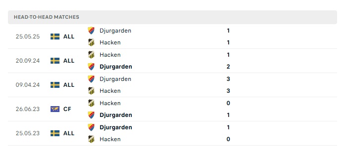 Lịch sử đối đầu Hacken vs Djurgardens