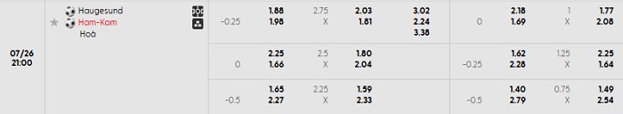 Bảng tỷ lệ kèo nhà cái Haugesund vs HamKam