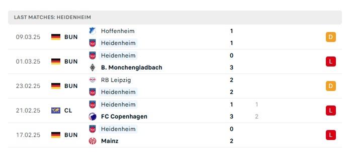 - Phong độ gần đây Heidenheim