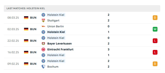 - Phong độ gần đây Holstein Kiel