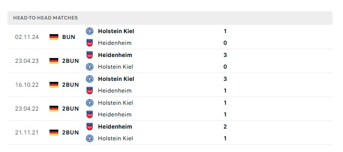 Lịch sử đối đầu Heidenheim vs Holstein Kiel