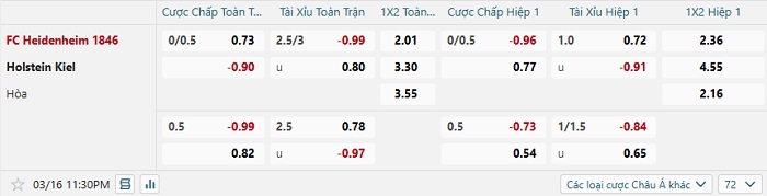 Bảng tỷ lệ kèo bóng đá Heidenheim vs Holstein Kiel
