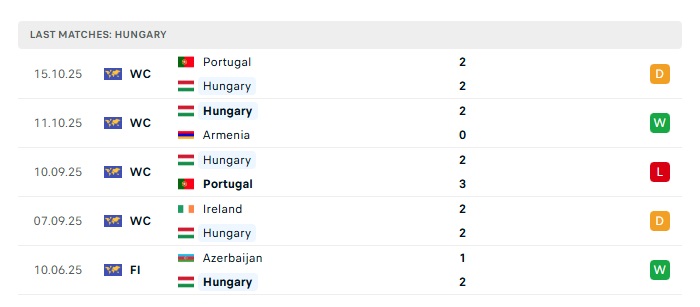 Trong thời gian gần đây, phong độ thi đấu của Hungary có phần nhỉnh hơn so với Ireland. Tính trong 5 trận đấu gần nhất của Hungary, họ đã có cho mình 2 chiến thắng, 2 hòa và còn lại là 1 thua. Trong khi đó thì Ireland lúc này đang thắng 1, hòa 3 và thua 2 trong 6 trận đấu gần nhất. Do đó, các chuyên gia đều tin vào việc đội chủ nhà đang có tỷ lệ thắng cao hơn.