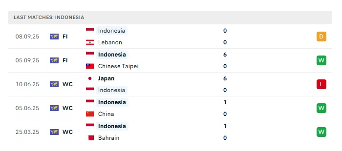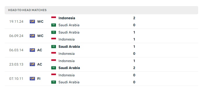Phong độ gần đây Indonesia vs Ả Rập Xê Út