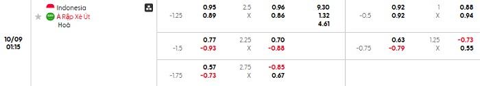 - Kèo tỷ số H1 Indonesia vs Ả Rập Xê Út: 0-1
