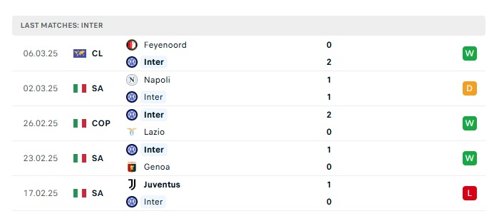 - Phong độ gần đây Inter Milan