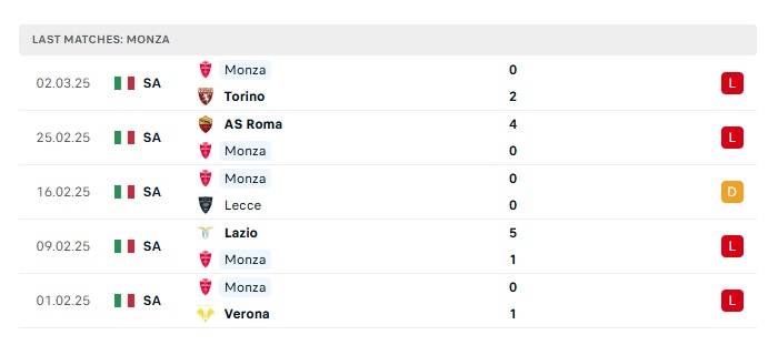 - Phong độ gần đây Monza