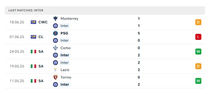 - Phong độ gần đây Inter Milan