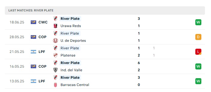- Phong độ gần đây River Plate