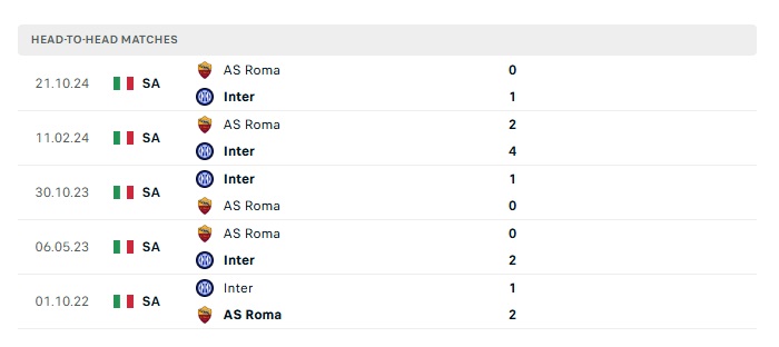 - Kèo tỷ số H2 Inter Milan vs Roma: 1-0
