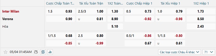 Soi kèo châu Á, kèo Inter Milan vs Verona