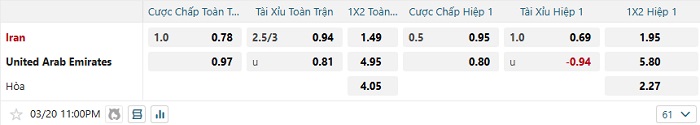 Bảng tỷ lệ kèo bóng đá Iran vs UAE