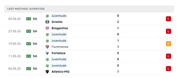 - Phong độ gần đây Juventude