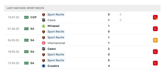 - Phong độ gần đây SC Recife