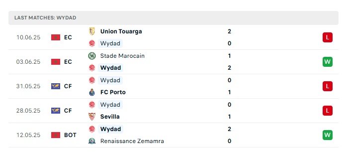 Phong độ gần đây Juventus vs Wydad Casablanca