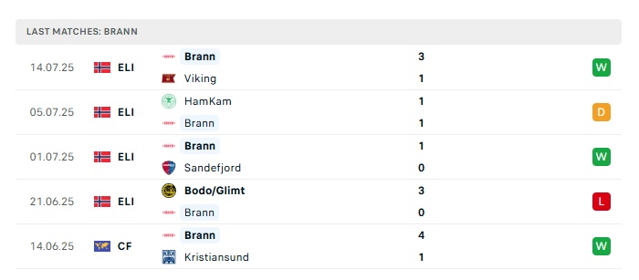 • Phong độ gần đây Brann