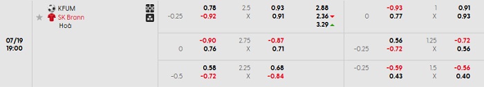 Bảng tỷ lệ kèo nhà cái KFUM Oslo vs Brann