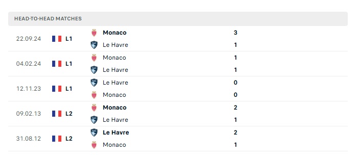 • Kèo tỷ số H2 Le Havre vs Monaco: 0-2