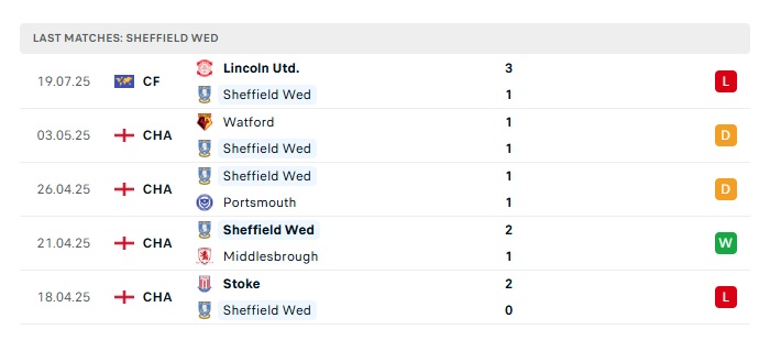 - Phong độ gần đây Sheffield Wed