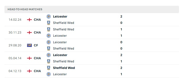 Lịch sử đối đầu Leicester City vs Sheffield Wed