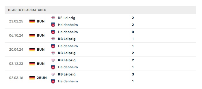 Lịch sử đối đầu Leipzig vs Heidenheim