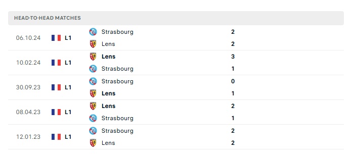 - Kèo tỷ số H2 Lens vs Strasbourg: 1-0