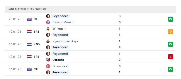 Feyenoord: Wellenreuther; Nieuwkoop, Trauner, Hancko, Bueno; Stengs, Beelen, Milambo; Moussa, Gimenez, Paixao.