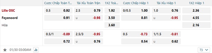 Bảng tỷ lệ kèo bóng đá Lille vs Feyenoord