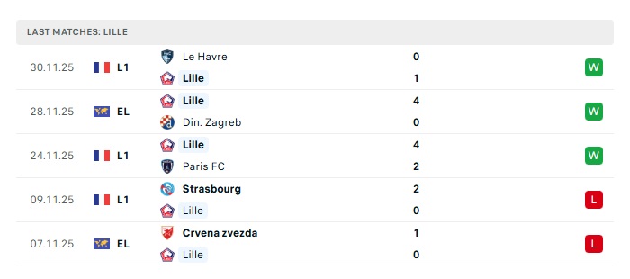 - Phong độ gần đây Lille