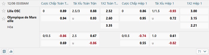 Bảng tỷ lệ kèo bóng đá hôm nay Lille vs Marseille