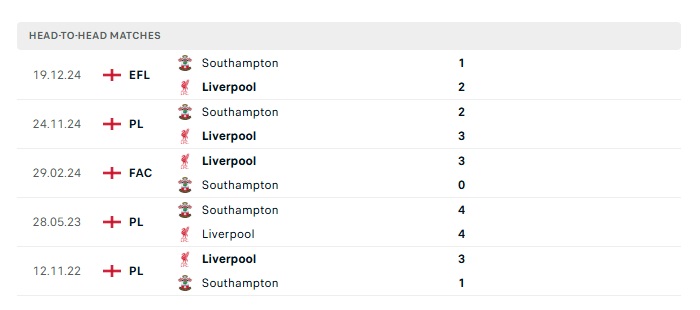 - Kèo tỷ số H2 Liverpool vs Southampton: 3-0