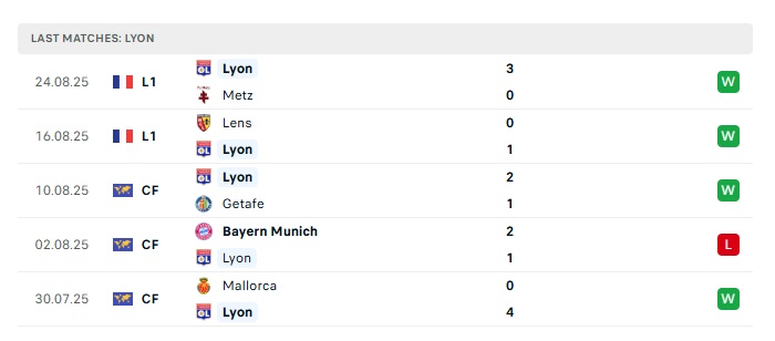 • Phong độ gần đây Lyon