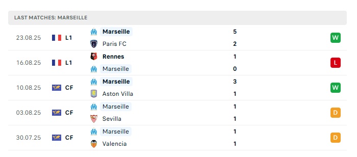 • Phong độ gần đây Marseille