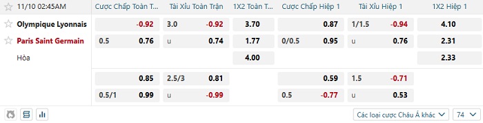 Soi kèo châu Á, kèo Lyon vs PSG