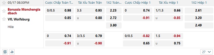 - Kèo tỷ số H2 M.gladbach vs Wolfsburg: 0-0