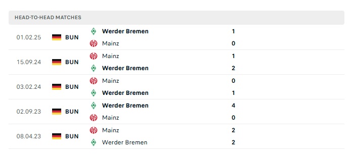 Lịch sử đối đầu Mainz vs Werder Bremen