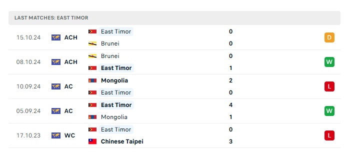 - Phong độ gần đây Đông Timo