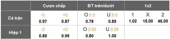 - Chọn Xỉu (Full-time): 5.5
