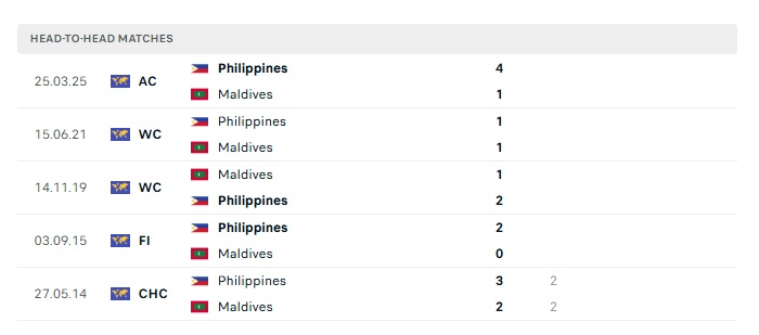 Lịch sử đối đầu Maldives vs Philippines
