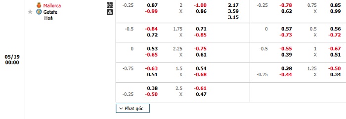 Bảng tỷ lệ kèo nhà cái Mallorca vs Getafe