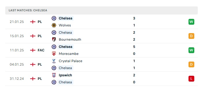 • Phong độ gần đây  Chelsea