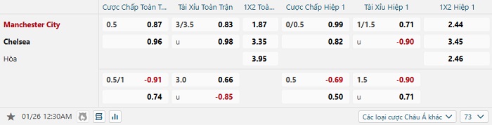 Soi kèo châu Á, kèo Man City vs Chelsea