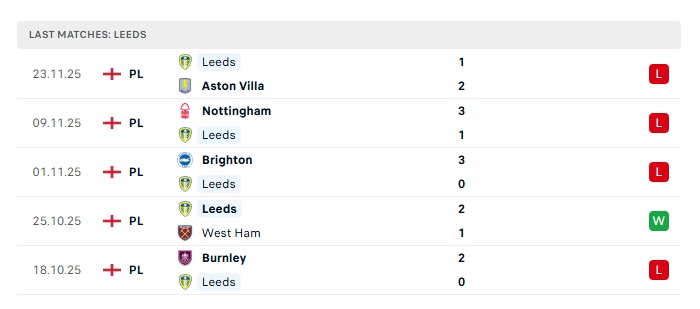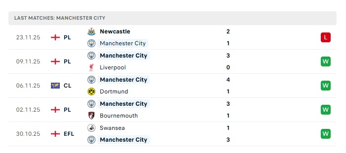 Hiện tại, chủ nhà Man City đang có kết quả thi đấu hoàn toàn áp đảo so với Leeds. Tính sau 12 vòng đấu đã qua, Man City đã có cho mình 22 điểm cùng vị trí thứ 3 trên BXH. Trong khi đó thì Leeds lúc này đang chỉ có được vị trí thứ 18 cùng với 11 điểm sau 12 vòng đã qua. Do đó, việc thầy trò Pep Guardiolo thắng áp đảo toàn diện đối thủ là một kết quả vô cùng dễ đoán.